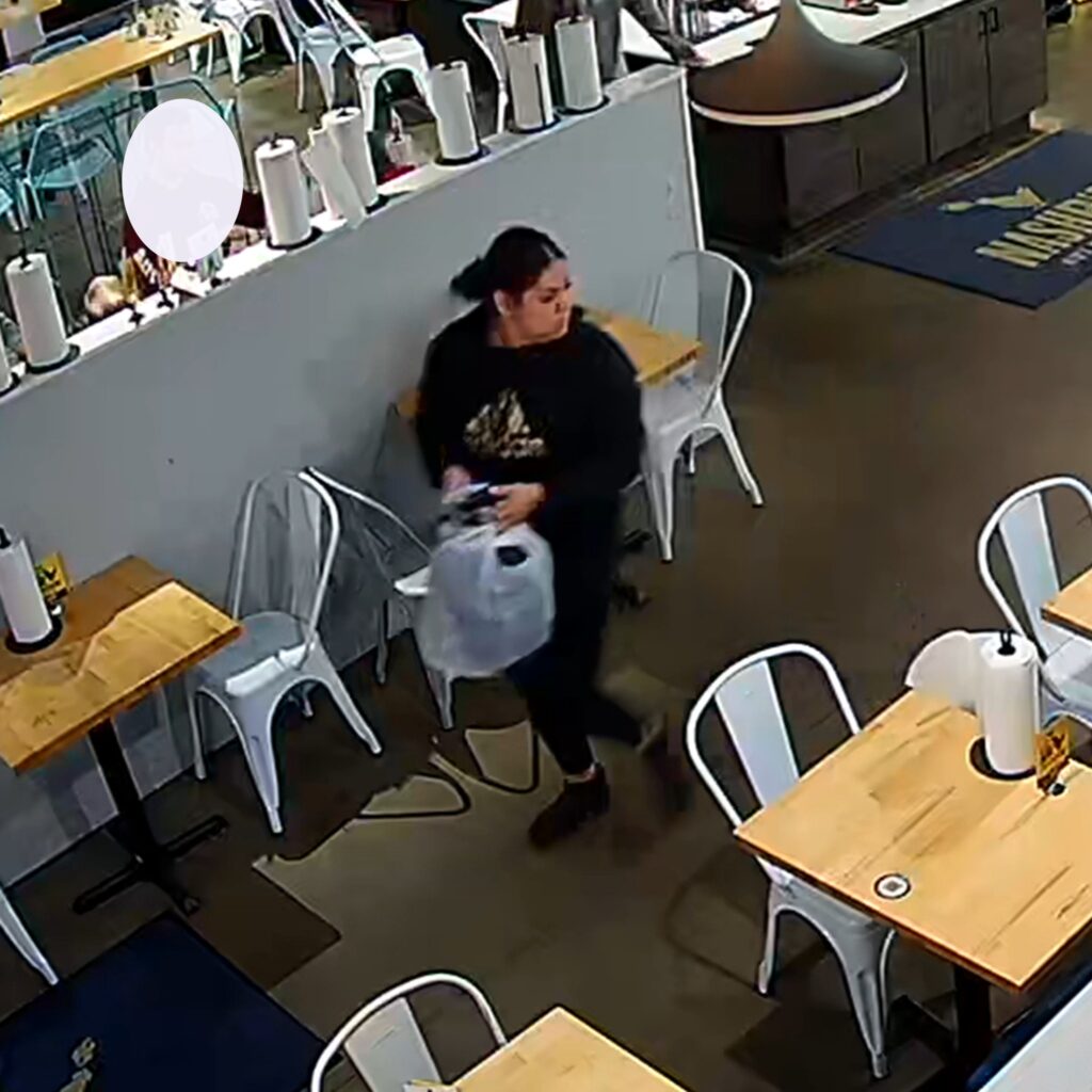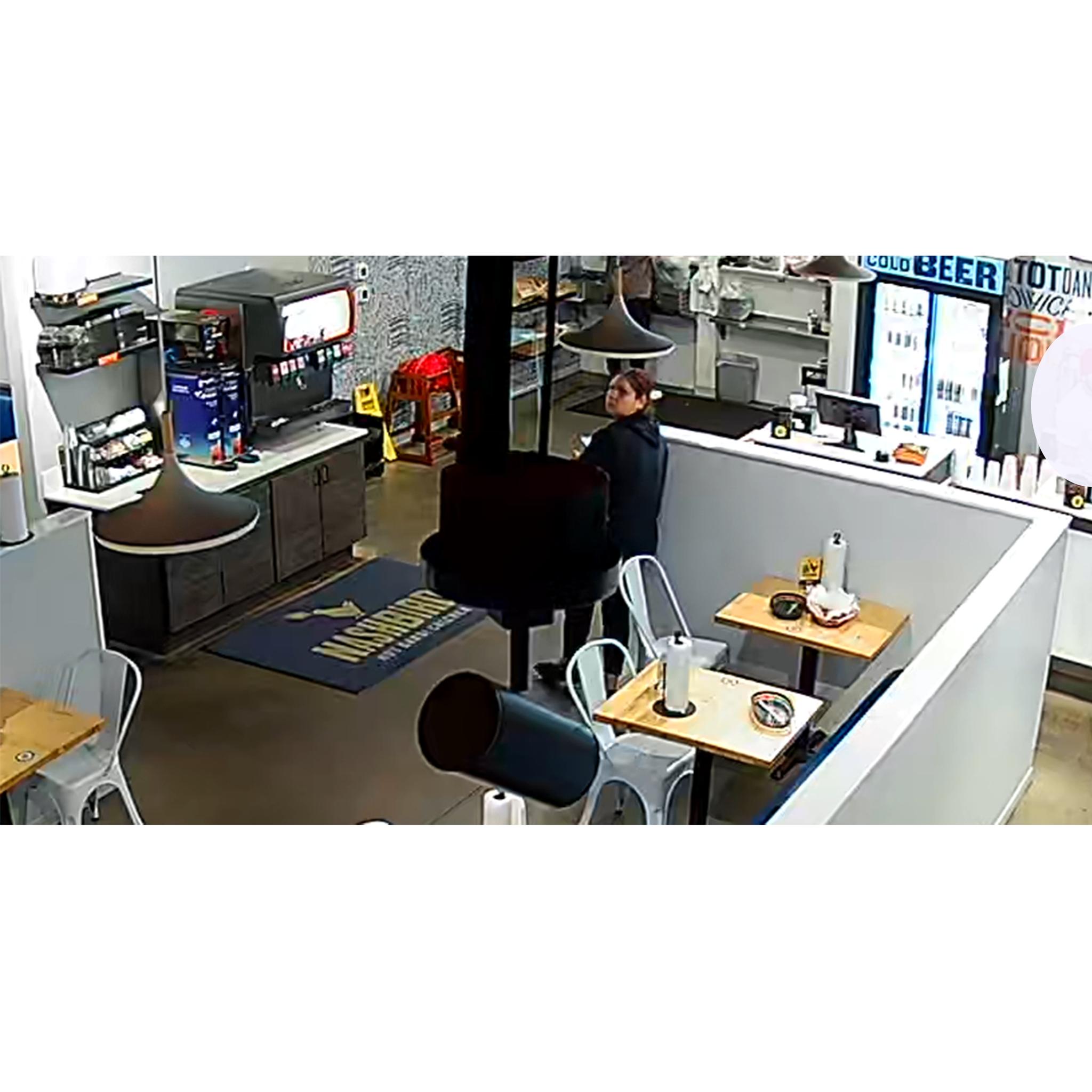 Description of the Incident: The suspect was caught on surveillance cameras taking advantage of a customer’s misplaced wallet and stealing cash before leaving with her food order.