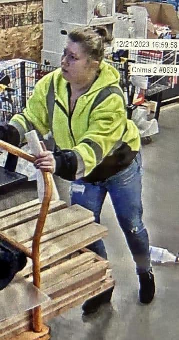 Colma, California – In this edition of Felony Friday, we revisit a theft incident on Thursday, 12/21/23, at approximately 5:01 pm, in the unit block of Colma Boulevard. Colma Officers actively seek the public’s assistance in identifying a female suspect involved in the theft.