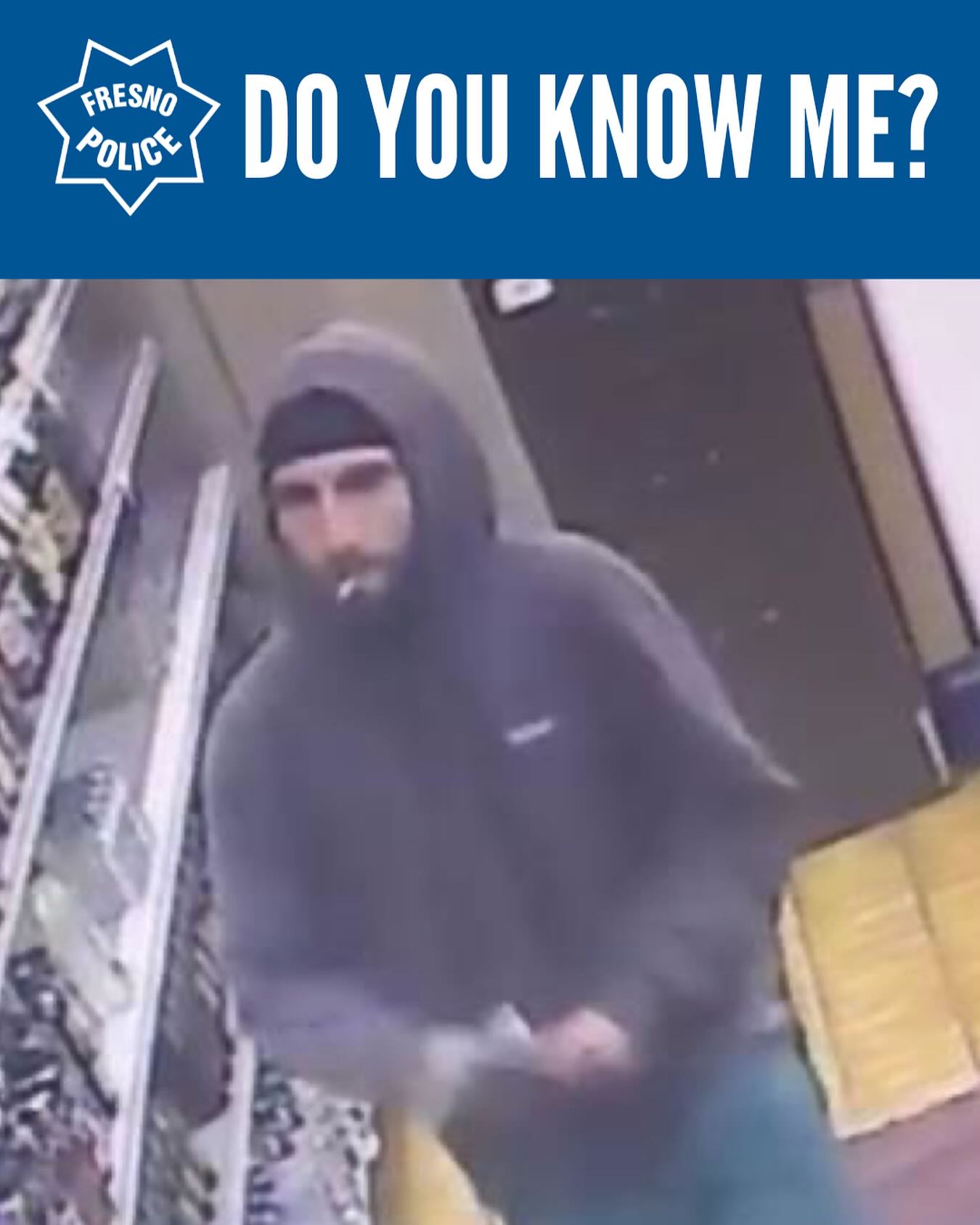 The Fresno Police Department is seeking assistance from the public in identifying a suspect involved in a commercial burglary.