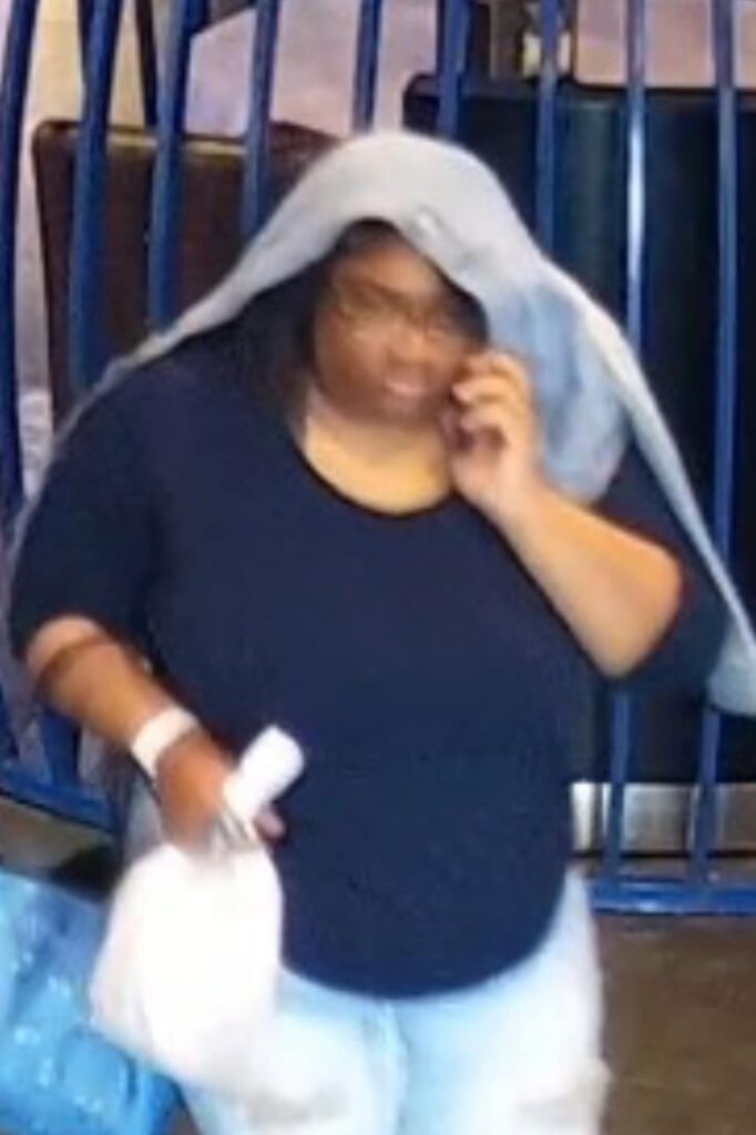 - Suspect Description: The primary suspect is dressed entirely in black with a gold head scarf. Two minor children accompanied them during the theft. Another individual, wearing light blue pants and black boots, was seen with the suspect in the black Buick.