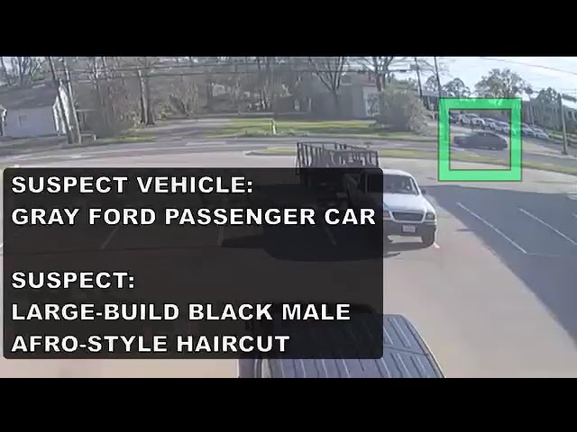 In this case, the suspect is described as a large, black male. He was reportedly driving a gray-colored Ford passenger car, as depicted in the accompanying video footage.